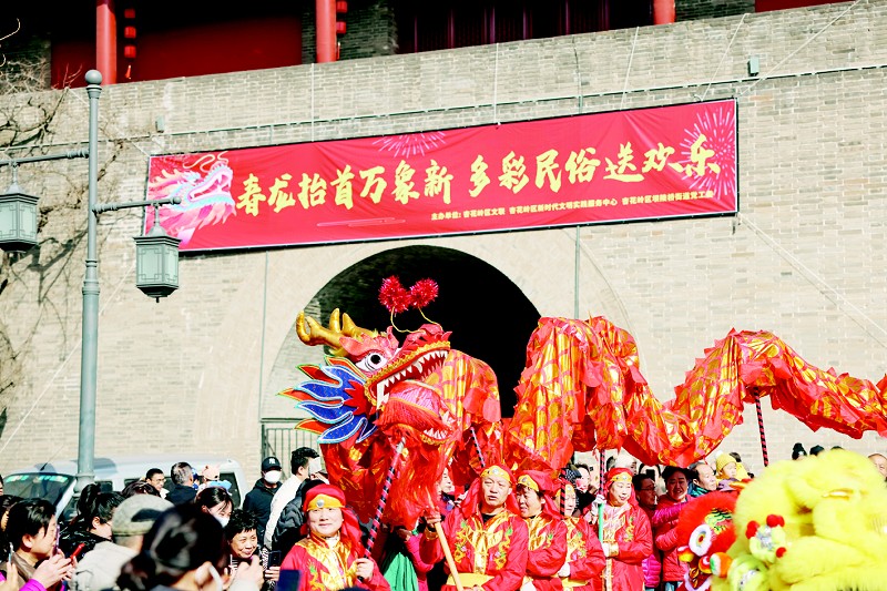 3月11日,农历二月初二,由太原市杏花岭区文联、杏花岭区新时代文明实践服务中心、杏花岭区坝陵桥街道党工委主办的“春龙抬首万象新 多彩民俗送欢乐”活动在府城文道拱极门广场举办。