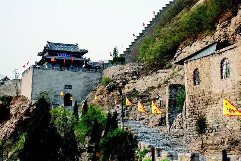 进入景区,首先映入眼帘的是雄伟的关楼。娘子关的城堡,背依高接云天的嵯峨绵山,面临涧壁如削的万丈深峪,山腰的垣堞随山势蜿蜒,桃河环绕其西北,曲折奔流,“襟山带水,金城汤池”,整个关城两翼是依山势蜿蜒起伏的长城,历史上成为山西、河北两省间的天然屏障。