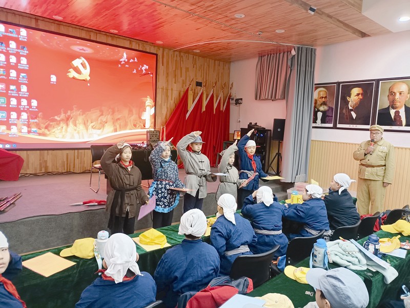队员们还参观了支前纪念馆,观看了微电影《支前洪流》。在纪念馆内,他们被一幅幅珍贵的照片、一件件真实的展品所吸引。“最后的一碗米送去作军粮,最后的一尺布送去做军装,最后的老棉被盖在担架上,最后的亲骨肉送他上战场……”这首体现军民团结的民谣令队员们深受触动,并纷纷表示,这次研学活动让他们受益匪浅,深刻理解了支前精神的内涵和价值,更加坚定了爱国信念。