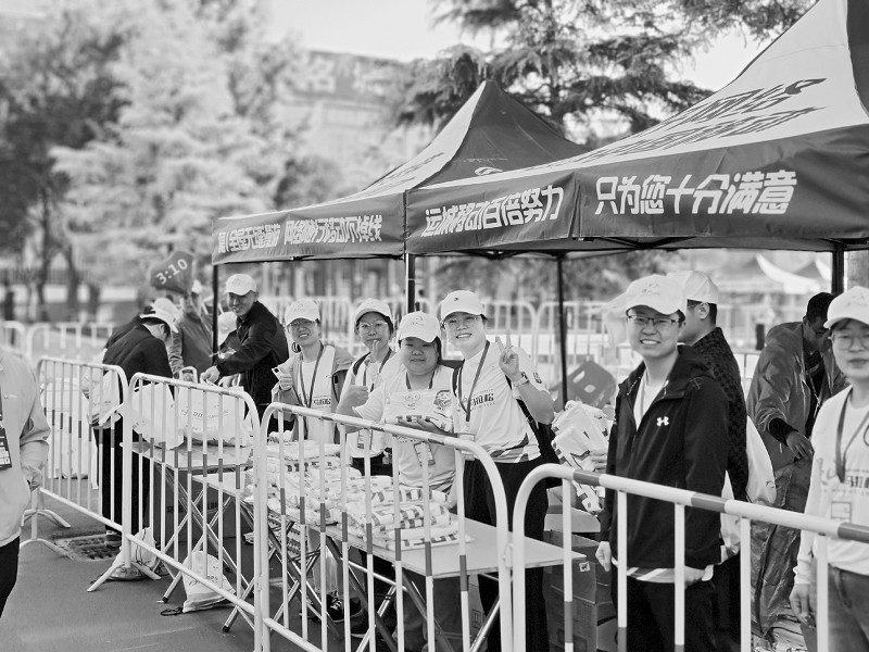 比赛当天,志愿者早早奔赴各自岗位。423名医疗观察志愿者分布在赛道沿线,如同移动的“安全堡垒”;407名补给站志愿者是赛道上的“能量补给官”;确保选手能在最短时间内获取所需。而在赛事的起终点,185名志愿者成了赛事运转的“中枢力量”。面对近万件寄存包裹,他们仔细核对信息、分类存放;在检录区,他们耐心引导千名选手有序入场。此外,还有竞赛服务、后勤保障等岗位的志愿者,他们或是在赛道上引导选手,或是发放赛事包,用细致入微的服务,为赛事保驾护航。