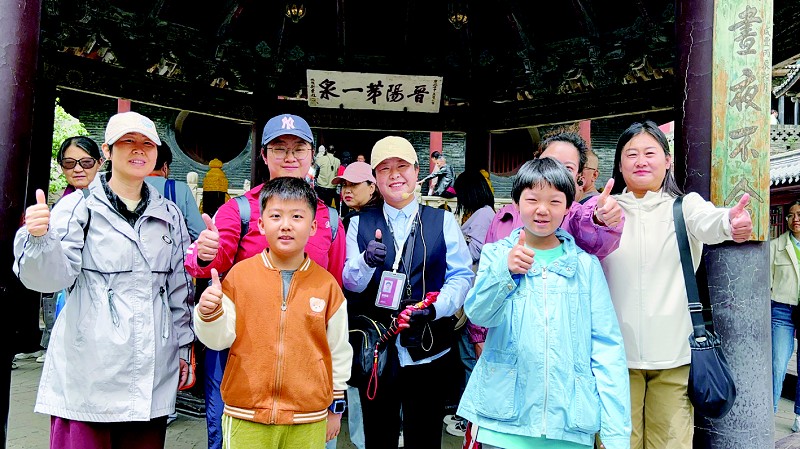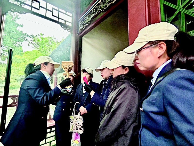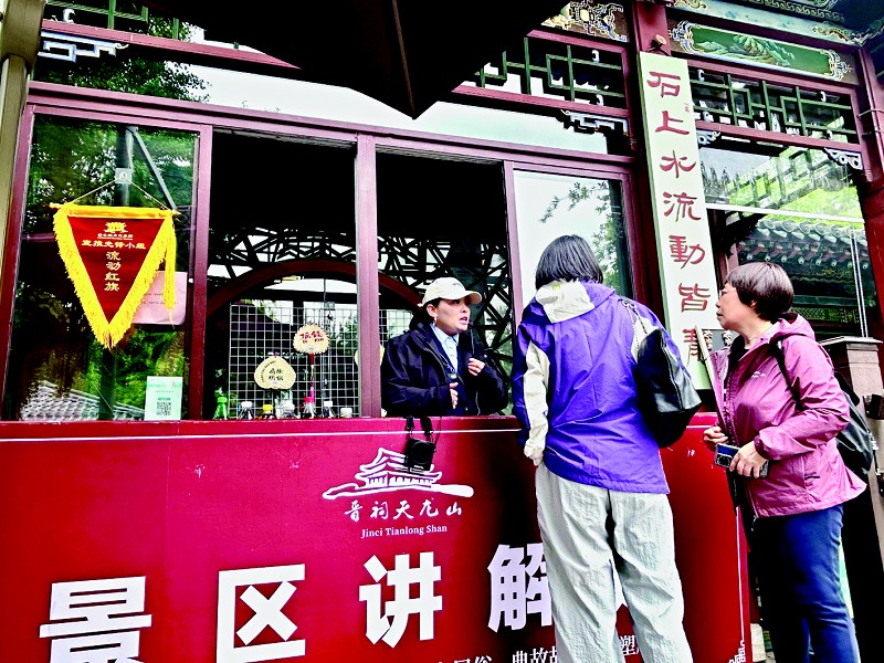 不仅如此,作为景区对外形象展示的主要窗口之一,讲解员除了不断更新知识储备,刷新游客对晋祠的认知,还会注重有形、规范、系统的服务礼仪,让游客通过讲解员的言谈、举止,感受到尊重与友好。“你看,这些女讲解员把自己收拾得漂漂亮亮来上班。”赵敏说,“讲解员要将专业素养融入每一个微笑、每一次鞠躬、每一句问候中,让服务不再流于表面,而是真正触及游客内心。在这里,专业讲解不仅是一项服务,更是传承历史文化和讲好家乡故事的使命”。