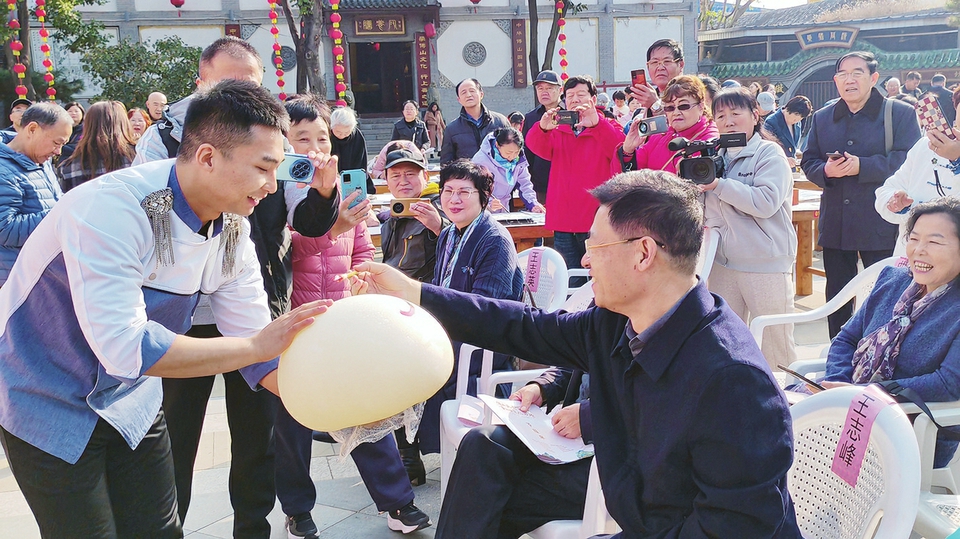 活动中,还举行了融合戏曲、歌曲、非遗与朗诵等艺术形式的文艺展演。张玉雯、冯天圣等带来的朗诵《傅山故里游》《走进中华傅山园》,用声音勾勒傅山故里韵味。梅花奖得主郑芳芳演绎的《花打潮》,老艺术家吴爱卿献上的碗碗腔《美丽的太原城》,常玉梅、梁俊敏、任生玉、郭小兰等带来的《卖画劈门》《打金枝》等经典选段,尽显晋腔晋韵。著名歌唱家刘文涛,青年歌唱家刘颖、武威等演唱的《论语拜师》《春天的芭蕾》《天下黄河九十九道湾》,激昂的歌声点燃现场气氛。“中国面舞第一人”闫锦超带来的非遗面艺表演《金蛇狂舞》,令人称奇。