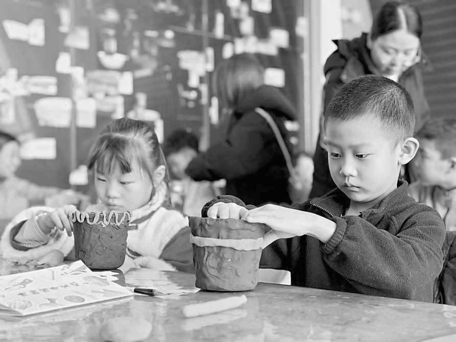 讲解环节结束后,动手实践活动随即展开。在博物馆社教老师的指导下,学生们制作出一件件独具特色的“陶罐”。陪同参与的家长纷纷表示:“博物馆的研学活动既有文化深度,又贴合孩子的兴趣,让青少年在轻松氛围中了解家乡历史,是非常有意义的成长体验。”