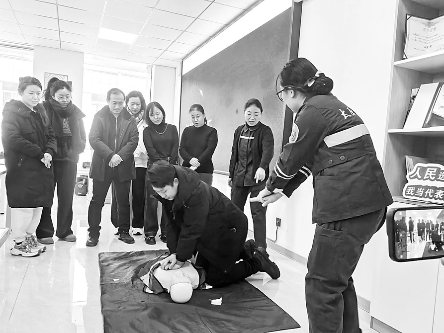 现场,太原市急救中心第九八五医院站的专业讲师用通俗易懂的语言讲解心肺复苏的核心原理、操作步骤及触电急救处置流程等。重点演示了心肺复苏时的按压部位、力度控制、呼吸配合等关键动作,对触电后的脱离电源、伤口处理等易错环节进行细致拆解。为确保学习效果,现场设置实操体验环节,大家使用模拟人练习,讲师逐一纠正动作偏差。