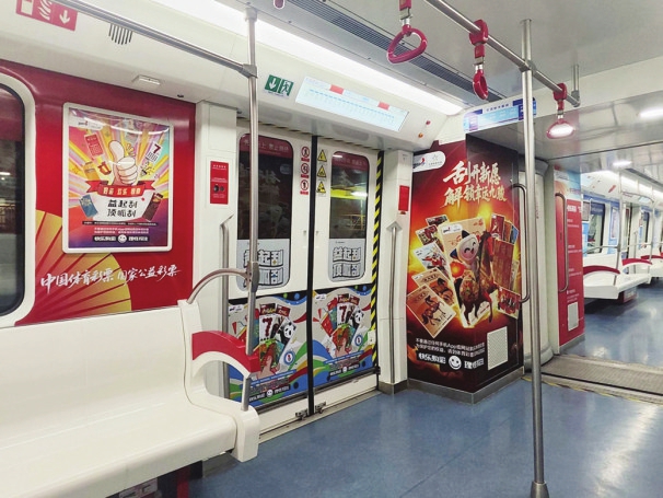 这列满载新春祝福的地铁专列,以6节车厢为画布,分别以“新春购彩季益起刮顶呱刮”“大乐透套餐票把幸运打包带回家”“看赛事玩竞彩更精彩”“安心购彩守护行动”为主题,精心绘制出流动的年味画卷。