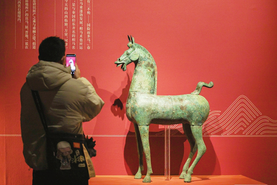 展览现场,观众在“相马”之旅中纷纷寻得心仪之“马”。太原金胜村赵卿墓出土的精美车马器与青铜器,仿佛传来春秋晋国正卿赵鞅戎马生涯的回响;朔州水泉梁北齐壁画墓中跃然而出的生肖马图,色泽鲜明、形神兼备……