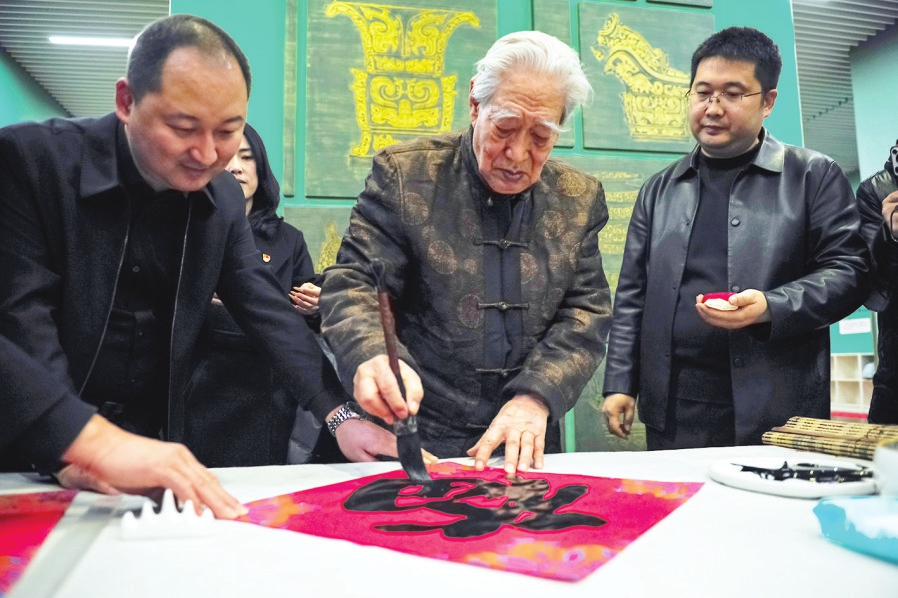 开幕式后,郭齐文先生和弟子们现场挥毫书写福字和对联,赠予莅临展览的嘉宾和观众,将新春祝福传递给大家。此外,他的弟子们还专为晋中市博物馆、图书馆、科技馆、规划馆四大文化空间量身书写春联,让笔墨书香浸润城市文化肌理。