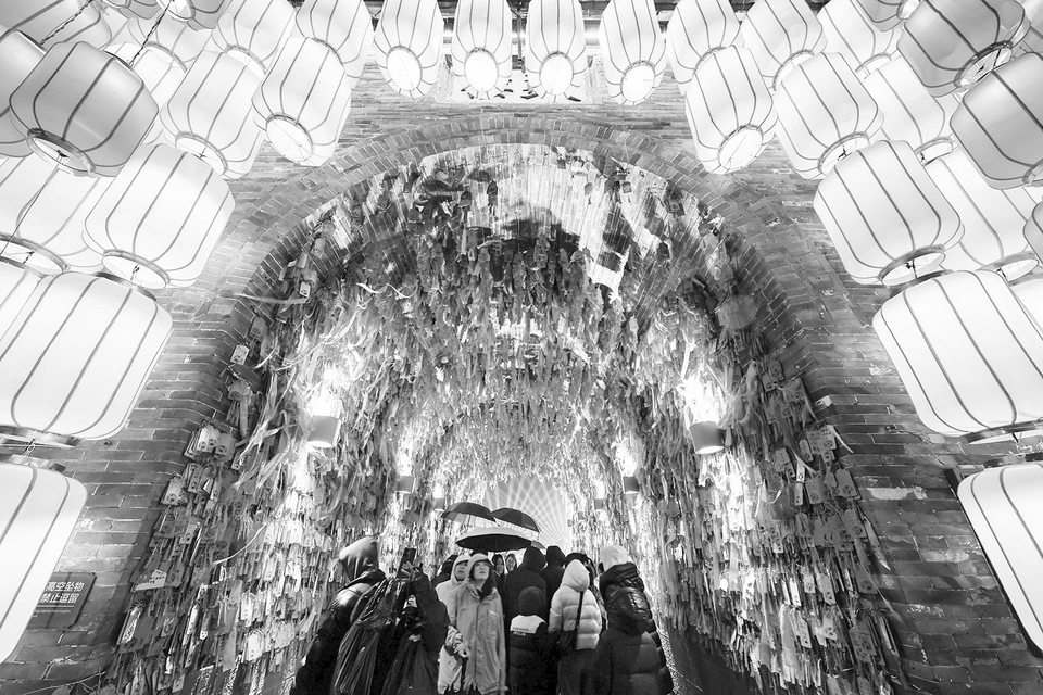 3月2日晚,太原古县城内灯火璀璨、游人如织。