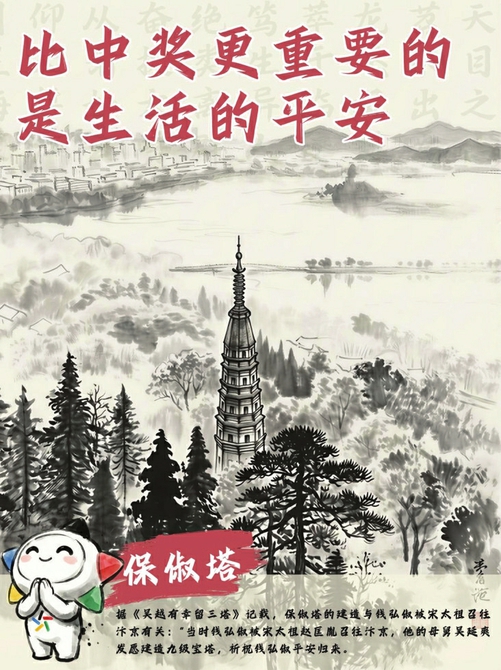 在杭州这座千年古城,钱弘俶留下的不仅是历史印记,更是一条贯穿古今的公益精神脉络。从镇守江潮的六和塔,到祈求昌盛的雷峰塔,从期盼归来的保俶塔,到钱王祠中的历史回响,这些古迹不仅见证了钱弘俶的治国智慧,也与当代中国体育彩票“来之于民、用之于民”的公益精神遥相呼应,让这份守护苍生的温情,在烟火人间里绵延至今。