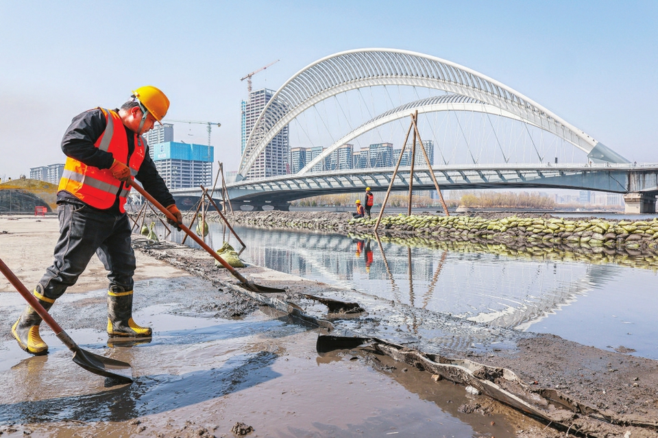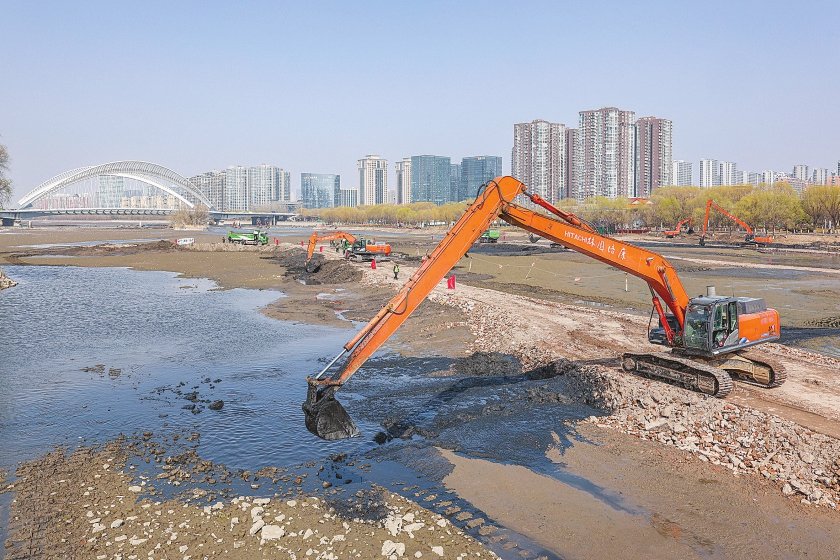 近日,太原市汾河景区管理委员会启动对景区内5、6、7号橡胶坝的更换工作,并同步开展清淤工程。目前,原有橡胶坝已完成拆除,大型挖掘设备进场开展河道清淤工作,预计清淤量达15万立方米,全部工程将于5月底汛期前完工。改造后的汾河景区将进一步提升景区水质及区域汛期雨水排放能力,呈现水清岸绿的城市生态画卷。 本报记者 胡远嘉 摄影报道