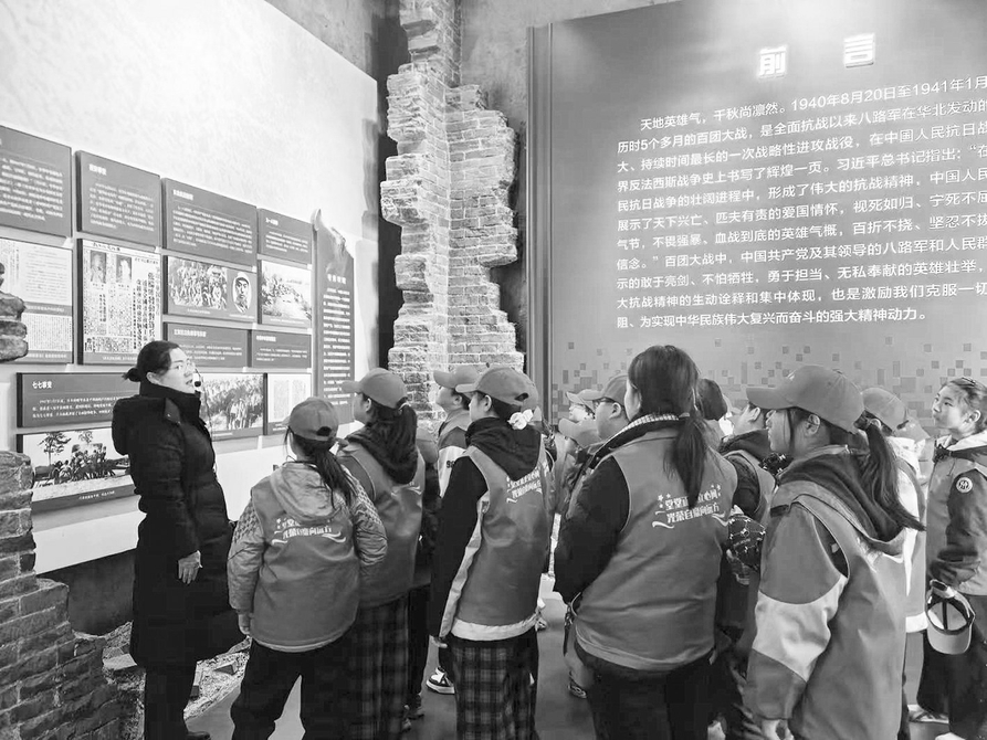 在百团大战纪念馆,教师姚永田为大家讲述了革命先辈浴血奋战的感人事迹,引导青少年赓续红色血脉、厚植家国情怀。