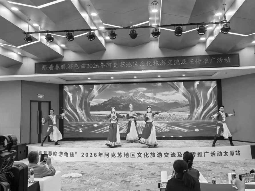 “今年,我们为全国朋友准备了‘跟着春晚游龟兹’精品线路、3000余万元的文旅消费券及面向涉旅企业的奖励扶持政策,还有丰富多彩的文体旅活动。诚邀太原的朋友来阿克苏赏美景、品美味、全面交流合作。”4月1日,在“跟着春晚游龟兹”2026年阿克苏地区文化旅游交流及宣传推广活动上,新疆阿克苏文旅推介人员向太原市民发出诚挚邀请。这场集歌舞展演、特色展示、文旅签约等于一体的推介活动,让太原市民足不出城,便沉浸式解锁了阿克苏的壮美风光与龟兹古韵。