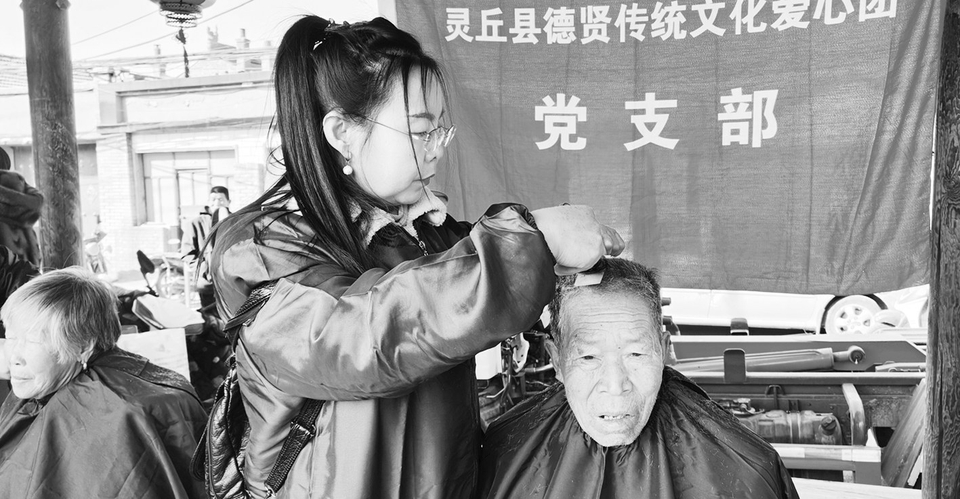 “王姨,今天给您理理。”在王秋丽家,58岁的王秀枝拿出工具为对方理发。王秀枝在灵丘县城开了一家理发店,生意红火,可每个月总有那么几天,她把店门一关,跟着爱心团下乡。