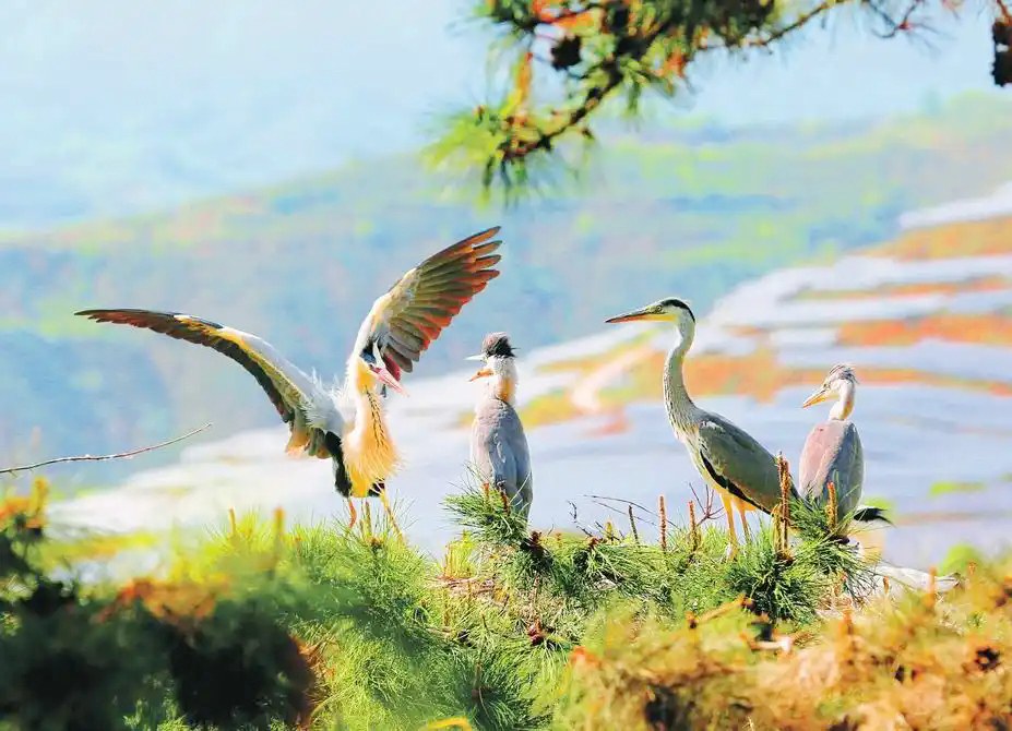 方山县积翠镇刘家庄村也曾鲜有人知,但近几年总会有一群苍鹭在村庄栖息,这个本不起眼的小村庄也因苍鹭逐渐被人所知。为此,该村以苍鹭为媒,在苍鹭栖息的山脚下建起了苍鹭湿地公园,既保证了湿地生态系统的运行,又为苍鹭提供了觅食嬉戏之处。为了方便游客观赏,村里还设立了“我和苍鹭有个约会”打卡点,并在距离栖息地200米的最优位置修建了观鸟台。以苍鹭为中心的乡村旅游品牌建设,将会让越来越多的游客遇见一个全新的刘家庄。