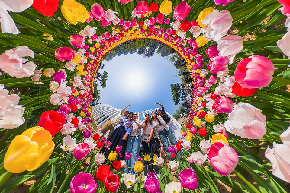 郁金香是春日最多彩、绚烂的调色板。4月15日,太原市晋阳湖公园的郁金香如约绽放,整片花海色彩斑斓,吸引了四面八方的游客纷至沓来,感受浪漫的春日美景。
