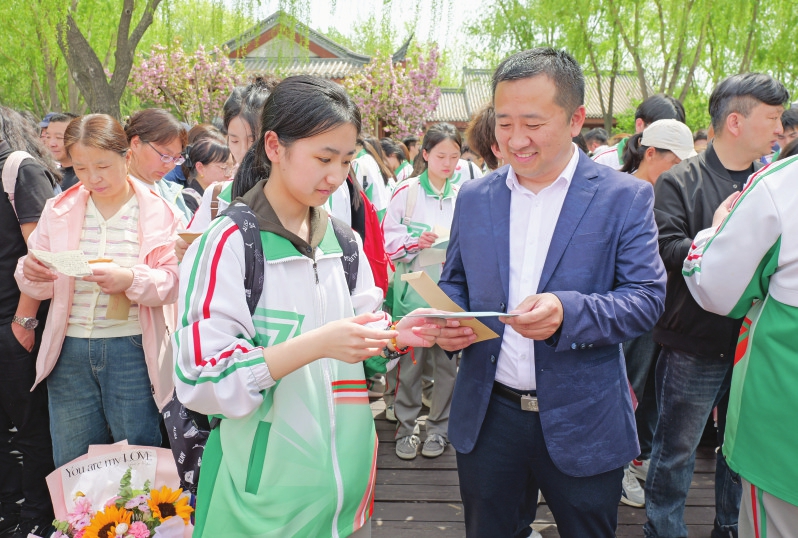 短暂的徒步,让大家暂时放下题海压力,在自然中舒展身心,在同行中凝聚情谊。抵达终点后,成人礼仪式温情启幕。亲子互换信件环节,学生们大声向父母告白,并与父母深情拥抱,场面温暖人心。学校还向学生们赠送了《中华人民共和国宪法》读本,以法治传承点亮初心;各班向母校敬献成长纪念相册,校领导为学生授予校徽,定格青春记忆,传承母校荣光。 本组摄影 本报记者 刘琴